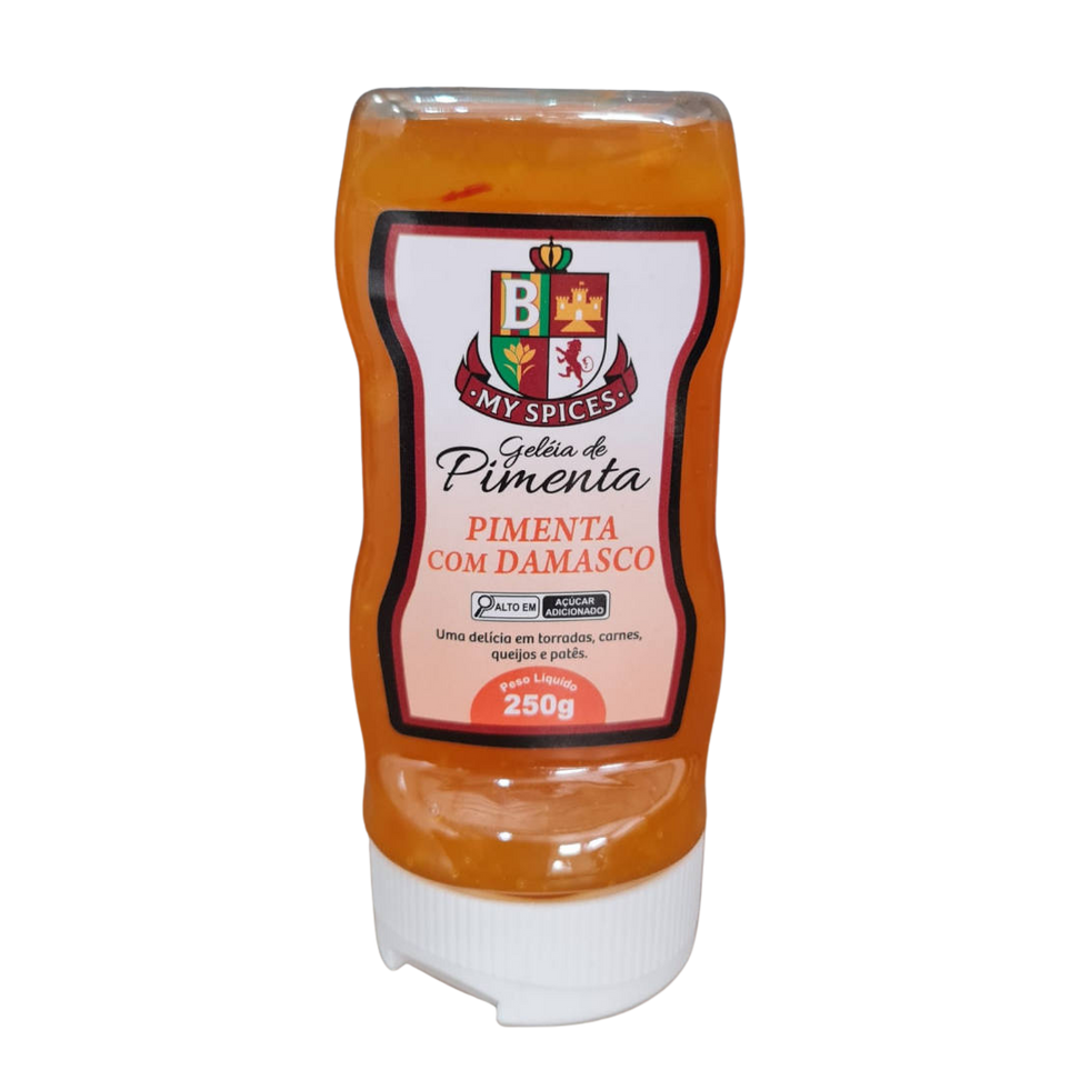Sofisticação e sabor em cada detalhe! Geleia de Pimenta com Damasco da My Spices em pote de 260g (preço para 250g). A doçura aveludada do damasco se une à picância equilibrada da pimenta, criando uma iguaria perfeita para queijos nobres, carnes ou para dar um toque especial em canapés.